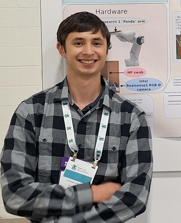 My PhD research created a system to allow robotic manipulator to collect nasopharyngeal (NP) swab samples. The task is particularly interesting within the context of robotics due to the fact that swab is unobservable once it enters the nasal cavity, thus requiring fine sensed control. Our research made use of a diverse range of techniques, including simulation and optimization, computer vision, and control theory to ultimately enable this task. Below you can see an example of our final control system, which is evaluated using a nasal cavity model held on a second robotic arm to emulate natural head motions.